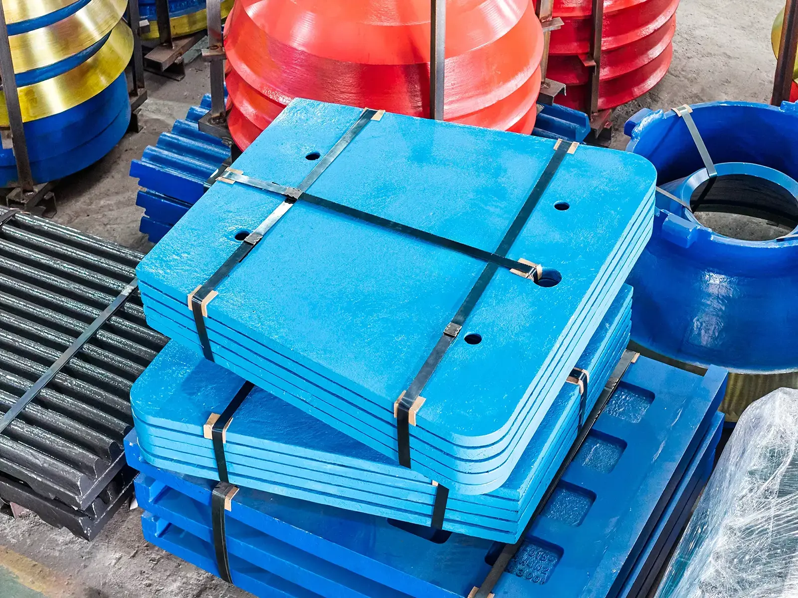 Stable Chamber Design: Precise casting ensures the plates maintain the correct crusher chamber geometry, promoting optimal crushing efficiency and consistent product output.